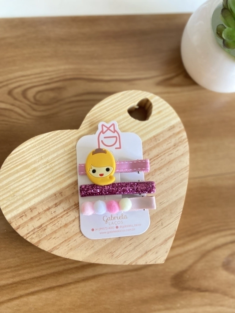 Transforme o visual da sua pequena em puro charme com os hair clips com aplique da Princesa Aurora! Inspirados na clássica Bela Adormecida, esses acessórios trazem delicadeza e magia para cada penteado. Finalizados no bico de pato de 5cm, são confortáveis, seguros e ideais para o dia a dia ou ocasiões especiais.