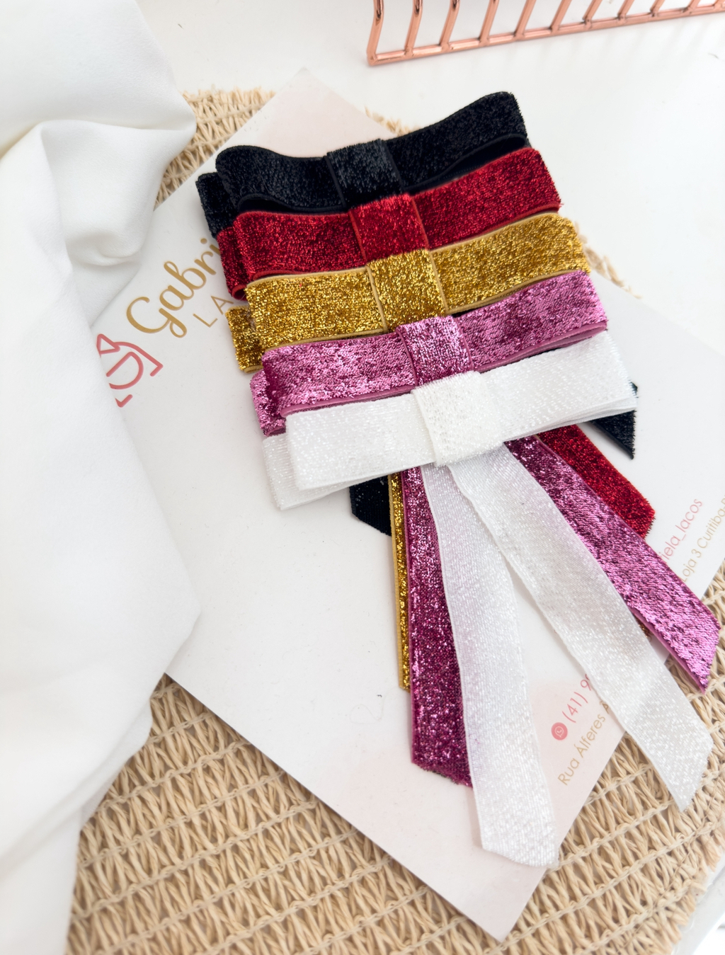 Brilhe muito com o Laço Larissa Glitter! ✨ Perfeito para quem ama um toque de glamour, esse laço é confeccionado em material com glitter super resistente, que não solta com facilidade.