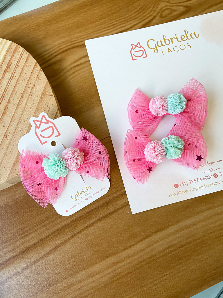 ✨ Laço Lívia Star + Pompom – Charme e Diversão! ✨