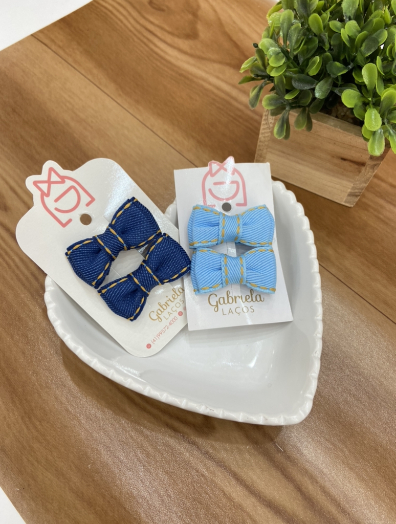 O Laço Sara Jeans traz a delicadeza em tamanho mini, perfeito para as pequenas que amam estilo e conforto.
