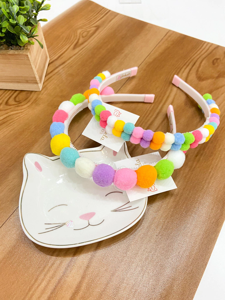 🌈🎀 Tiara Pompons Coloridos – Diversão e Charme em Cada Detalhe! 🎀🌈